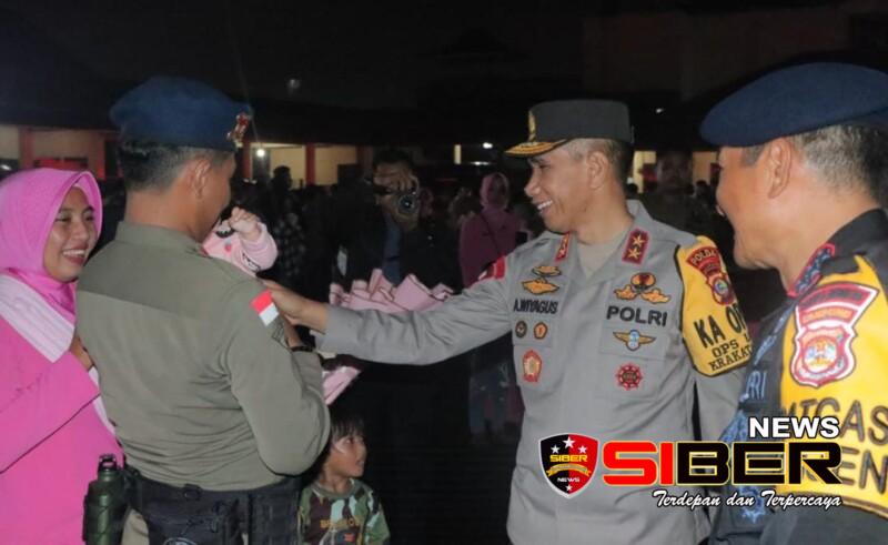 Bandar Lampung, SIBERNEWS.CO.ID _ Kapolda Lampung Irjen Pol Akhmad Wiyagus didampingi forkomfinda Prov Lampung dan Pejabat Utama Polda Lampung serta Bhayangkari, Sambut kedatangan Pasukan Satgas OPS Damai Cartenz Polda Lampung tahun 2022, BKO Polda Papua, Minggu 01 Januari 2023, Pukul 00.30 Wib di Mako Satuan Brimob Polda Lampung di Rawa Laut Bandar Lampung. Senin, 02 Januari 2023