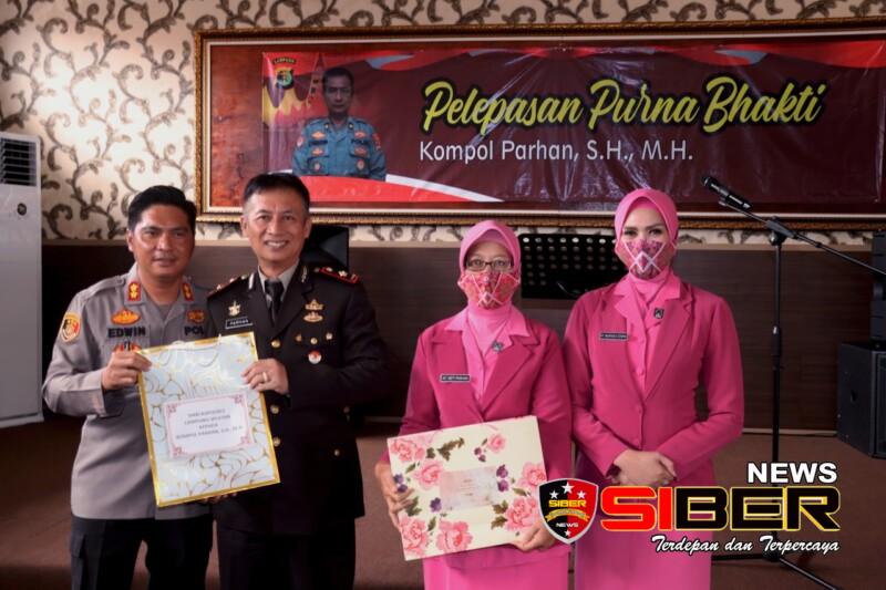 Kapolres Lampung Selatan AKBP Edwin menyampaikan ucapan terima kasih kepada Kompol Parhan atas kinerja dan dedikasinya, ia sangat terbantu dengan kinerja tupoksinya sebagai Kepala Bagian Perencanaan (Kabagren) dalam merencanakan dan menyusun anggaran di kesatuan Polres Lampung Selatan.
