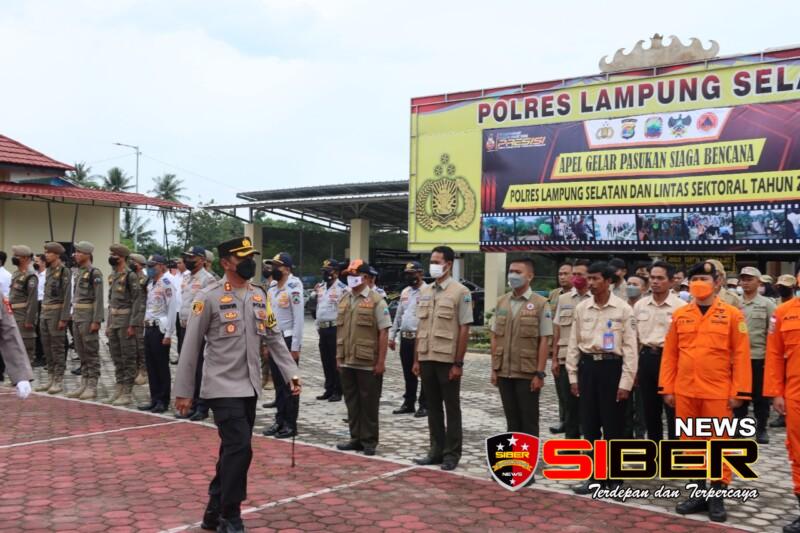 Lamsel, SIBERNEWS.CO.ID_Kapolres Lampung Selatan bersama instansi terkait dan pendukung melaksanakan apel siaga dan gelar pasukan penanganan bencana dalam rangka kesiapan menangani kejadian bencana alam di wilayah Kabupaten Lampung Selatan tahun 2022 yang digelar di halaman Mapolres Lampung Selatan. Senin (10/10/2022 )Pukul 08.00 Wib.
