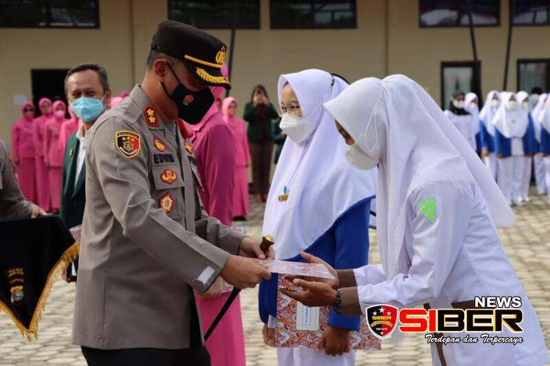 Lampung Selatan, SIBERNEWS.CO.ID _ Kapolres Lampung Selatan AKBP Edwin, SIK, SH, MSi memberikan penghargaan kepada para Relawan Kesehatan Bhayangkari, Tenaga Kesehatan (Nakes) Ikatan Dokter Indonesia (IDI), Mahasiswa dan Bidang yang telah membantu mensukseskan pelaksanaan Vaksinasi di Kabupaten Lampung Selatan.
