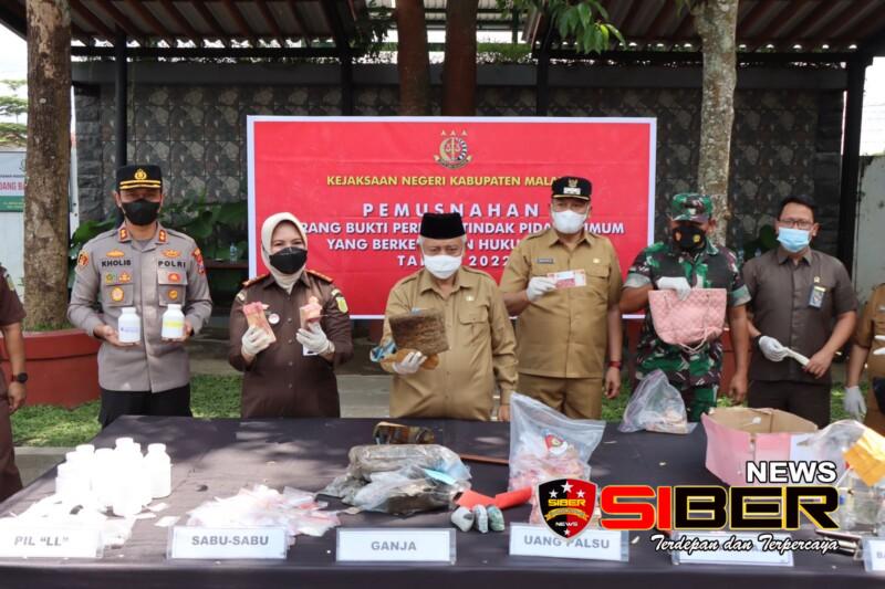 Malang, SIBERNEWS.CO.ID _ Kepala Kepolisian Resor Malang AKBP Putu Kholis Aryana beserta Forum Komunikasi Pimpinan Daerah (Forkopimda) menghadiri kegiatan pemusnahan berbagai jenis barang bukti di Kejaksaan Negeri (Kejari) Kabupaten Malang, Senin (12/12/2022) siang.