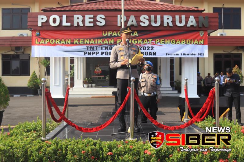 Kapolres Pasuruan Pimpin Upacara Kenaikan Pangkat Pengabdian Anggota