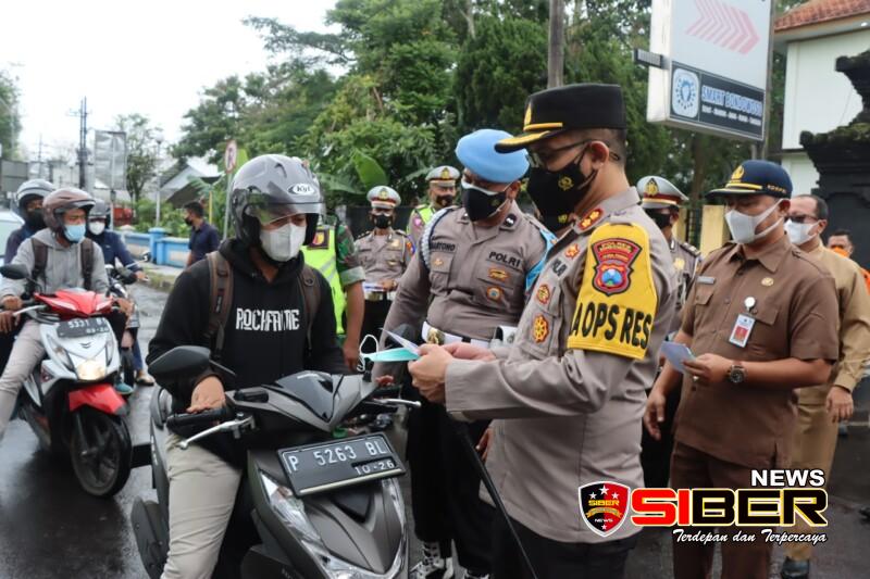 Kapolres Wimboko Turun Jalan Bagikan Masker dan Ingatkan Prokes