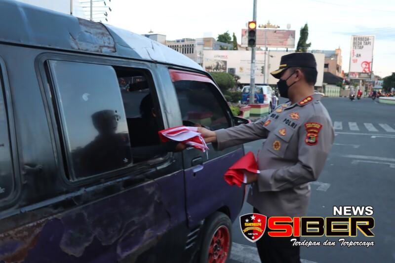 Bandar Lampung, SIBERNEWS.CO.ID – Dalam rangka menyemarakkan HUT RI ke-77 khususnya di Kota Bandar Lampung, Kapolresta Bandar Lampung Kombes Pol Ino Harianto, S.I.K., M.M. bersama segenap unsur Forkopimda Kota Bandar Lampung membagikan bendera merah putih Selasa (16/8/2022) sore. Kegiatan tersebut, berlangsung di Jalan Radin Intal tepatnya lampu merah Tugu Adipura Kota Bandar Lampung.
