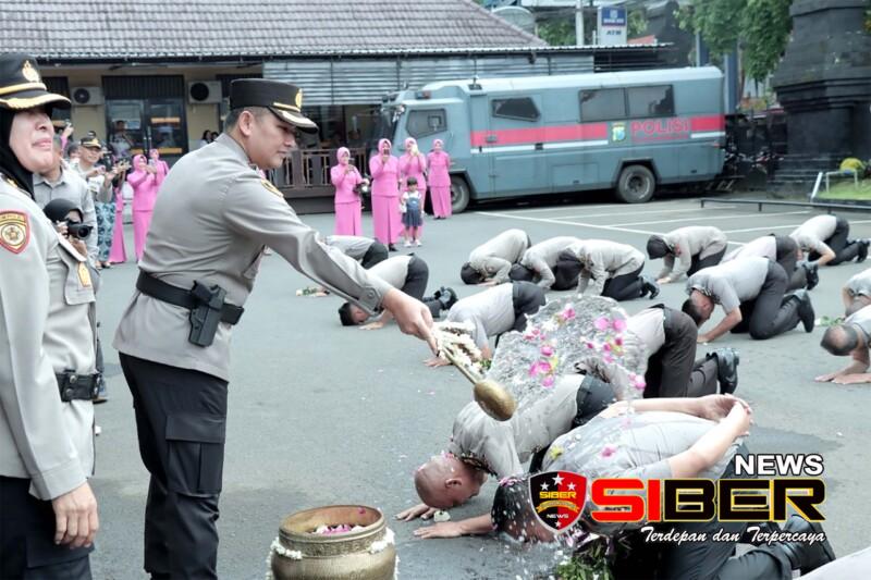 Keluarga yang hadir diberikan kesempatan untuk memberikan setangkai bunga kepada pasangannya sebagai bentuk ucapan selamat. Rangkaian Acara dilanjutkan dengan tradisi kenaikan pangkat. Seluruh personel melakukan sujud sebagai ucapan syukur dan tiga orang perwakilan menjalani prosesi penyiraman air bunga oleh Kapolresta Malang Kota
