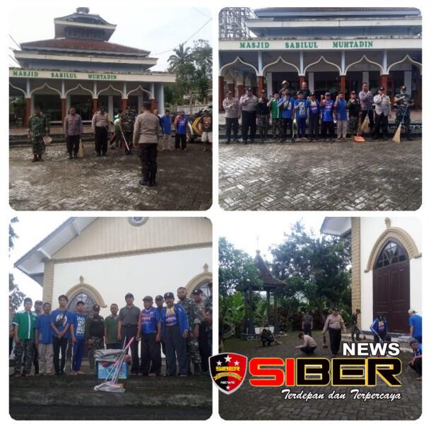 Malang, SIBERNEWS.CO.ID _ Kapolsek Sumbermanjing Wetan (Sumawe) IPTU Heriyani Suprapto bersama TNI dan potensi masyarakat (Potmas) melakukan kerja bakti di Masjid Sabilul Muhtadin dan Gereja Induk GKJW Desa Sitiarjo. Sabtu (26/11/2022).
