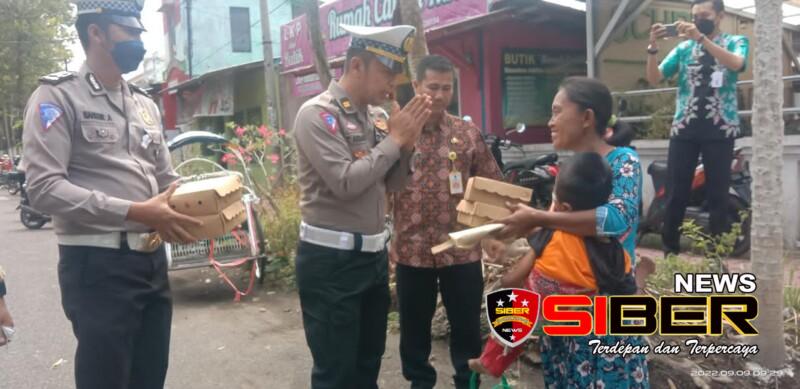 Bondowoso, SIBERNEWS.CO.ID _ KRI Polres Bondowoso, Iptu.Taufan Akbar SH, bersama Kasat Lantas AKP. Suryono,S. Sos, melakukan rutinitas Jumat Berkah adapun Puluhan nasi kotak dibagikan kepada masyarakat sekitar , khususnya tukang becak, pejalan kaki, supir angkot dan WP (Wajib Pajak) yang berada di Kantor Bersama Samsat Bondowoso, Jumat (9/9/2022).
