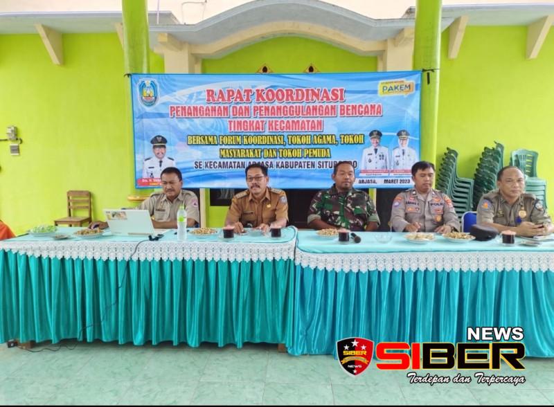 Situbondo, SIBERNEWS.CO.ID _ Bertempat di Pendopo Kantor Kec. Arjasa Kab. Situbondo, telah dilaksanakan kegiatan Rapat Koordinasi Penanganan dan Penanggulangan Bencana Tingkat Kecamatan bersama Forkopimca, Tokoh Agama, Tokoh Masyarakat dan Tokoh Pemuda Kecamatan Arjasa di Kantor Kec. Arjasa Kab. Situbondo, Selasa (14/03/23)