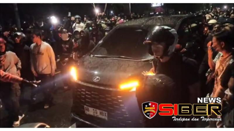 Mobil Sultan perlahan menembus massa dan para peserta aksi mengawal mobil tersebut masuk ke dalam Mapolda DIY.