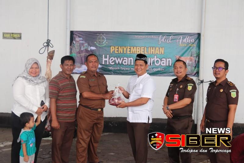 SITUBONDO, SIBERNEWS.CO.ID- Momen Hari Raya Idul Adha masih di rasakan ummat muslim, Kejaksaan Negeri Situbondo, Jawa Timur membagikan 225 daging kurban kepada warga sekitar dan pegawai ASN atau non-ASN di lingkungan Kejari Situbondo. Pelaksanaan pemotongan hewan kurban dilakukan di halaman parkir belakang dengan disaksikan langsung oleh Kajari Situbondo Ginanjar Cahya Permana dan PJI Kejari Situbondo, Rabu (19/6/2024).