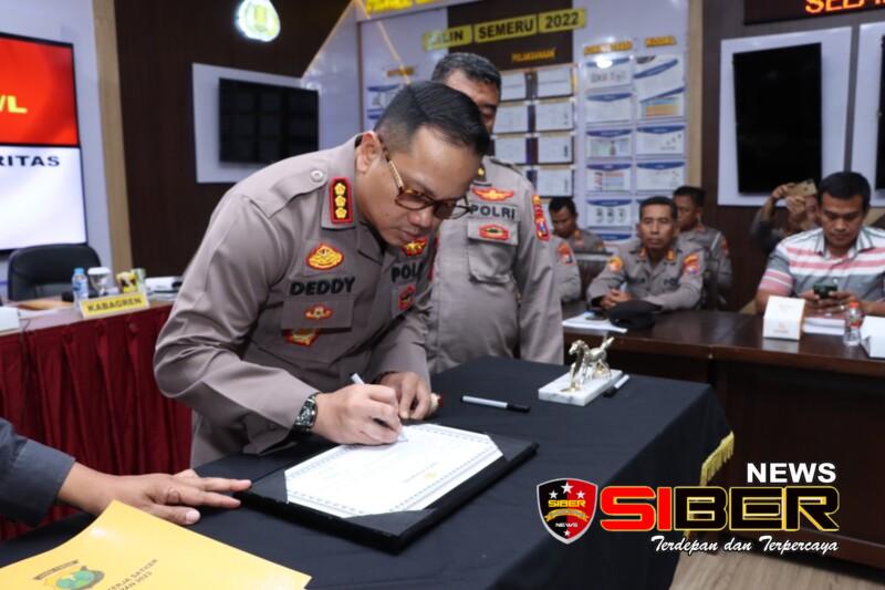 Acara sosialisasi DIPA itu ditandai dengan penandatanganan pakta integritas Subsatker jajaran Polresta Banyuwangi tahun anggaran 2023.(Herman)