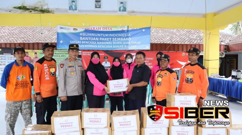 Malang, SIBERNEWS.CO.ID _ Banjir yang menerjang Desa Lebakharjo, Kecamatan Ampelgading, Kabupaten Malang, Kamis (3/11) lalu sempat melumpuhkan berbagai aktivitas warga. Seiring dengan itu, Kepedulian berbagai elemen masyarakat mengalir deras, termasuk dari Bhayangkari Cabang Malang.