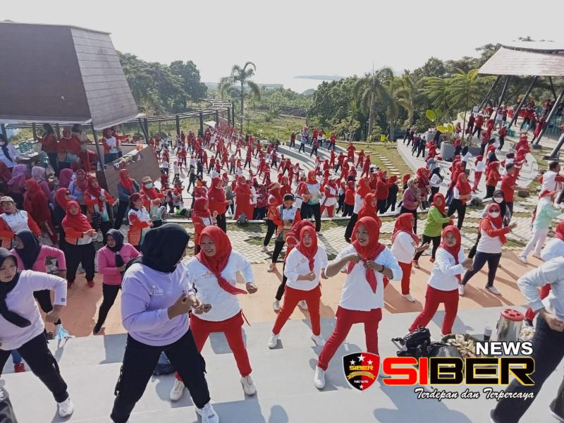 Kegiatan senam bersama dilaksanakan di objek wisata menara Siger Kencana kawasan masjid agung BSI Bakauheni Harbour City [ BHC ] yang baru saja telah di resmikan oleh menteri BUMN Erick Thohir pada hari sabtu 18 Maret 2023 kemarin.