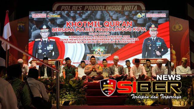 PROBOLINGGO, SIBERNEWS.CO.ID – Suara lantunan ayat-ayat suci Al-Qur’an dari ribuan santri dan hafiz bergema khusyuk di lapangan apel Mapolres Probolinggo Kota, Jumat (1/11/2024). Acara ini merupakan kegiatan Khataman Al-Qur’an bersama 1000 santri dan hafiz Qur’an yang digagas oleh Kapolres Probolinggo Kota, AKBP Oki Ahadian P., S.I.K., M.H., dengan tujuan memperkuat ikatan spiritual dan memohon keberkahan dalam menyongsong Pemilukada Kota Probolinggo.