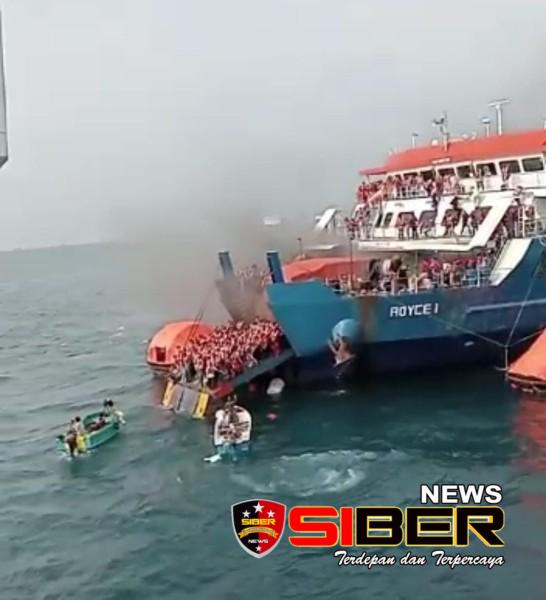Lampung Selatan, SIBERNEWS.CO.ID _ KMP Royce 1 yang bertolak dari pelabuhan Merak tujuan Bakauheni Alami kebakaran di lintasan pelabuhan PT. Asdp Indonesia ferry cabang Merak Banten-Bakauheni Lampung. Sabtu (06/05/23).