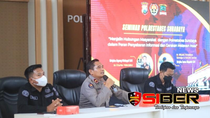 Surabaya, SIBERNEWS.CO.ID _ Maraknya berita hoax yang saat ini beredar begitu cepat di Masyarakat membuat Humas Polrestabes Surabaya mengajak mahasiswa untuk berkolaborasi mengadakan seminar dengan tema