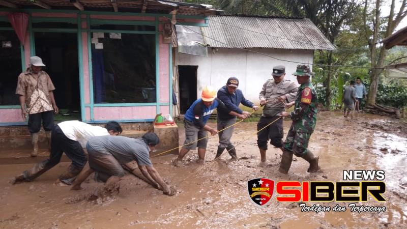 Situbondo, SIBERNEWS.CO.ID _ Personil gabungan TNI, POLRI, BPBD, Tagana dan Pemerintah Desa Sumbermalang gotong royong membersihkan sisa material lumpur pasca bencana longsor yang terjadi di Dusun Sumbertengah Desa Sumberargo Kec. Sumbermalang Situbondo, Senin (1/5/2023)
