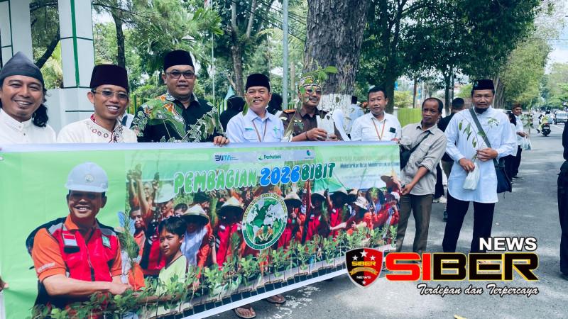 BONDOWOSO,SIBERNEWS.CO.ID _ Perum Perhutani Kesatuan Pemangkuan Hutan (KPH) Bondowoso melaksanakan kegiatan pembagian ribuan bibit Multi Purpose Tree Species (MPTS) kepada masyarakat dan pengguna jalan di depan Kantor Perhutani, Jalan A. Yani No. 90 Bondowoso, Kamis siang (8/1/2026). Sedikitnya 2.026 bibit yang terdiri dari mangga, durian, alpukat, dan sukun didistribusikan dalam agenda bertajuk “Sedekah Oksigen 2026” sebagai upaya peningkatan tutupan vegetasi sekaligus penguatan kapasitas ekosistem melalui partisipasi publik.