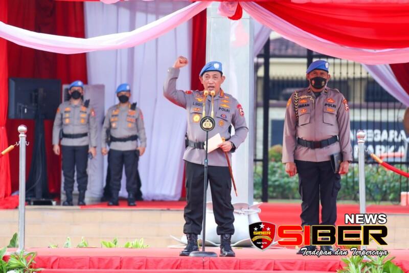 Jakarta, SIBERNEWS.CO.ID _ Kapolri Jenderal Listyo Sigit Prabowo memimpin Upacara pelepasan pasukan perdamaian Kontingen Garuda Bhayangkara Satgas FPU 4 Minusca di Lapangan Bhayangkara, Jakarta Selatan, Selasa (6/9).