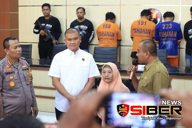 Pada kesempatan yang sama, hadir pula korban jambret yaitu Sumaiyah (73) tahun, didampingi anaknya Sukendah yang juga sebagai kepala desa Driyorejo, Gresik.