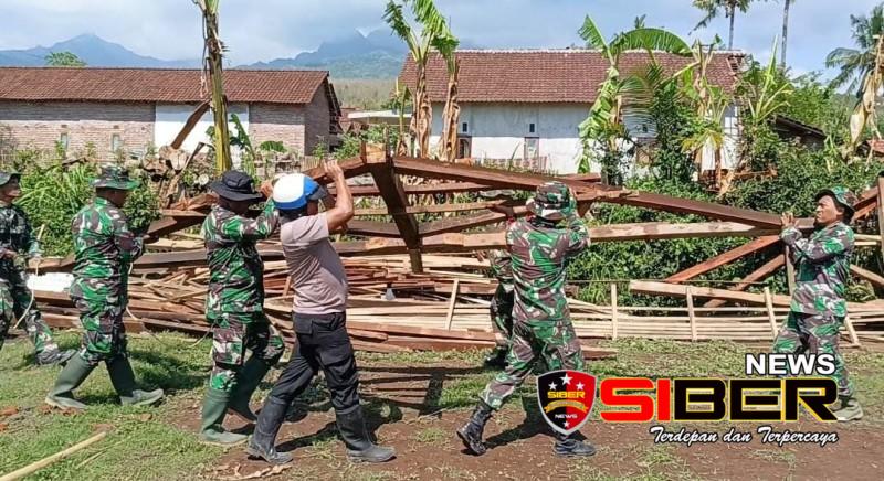 Tanpa rasa lelah membersihkan puing-puing reruntuhan sisa bangunan yang hancur, bersama Koptu Rusli anggota Koramil 0822/02 Curahdami Bondowoso.