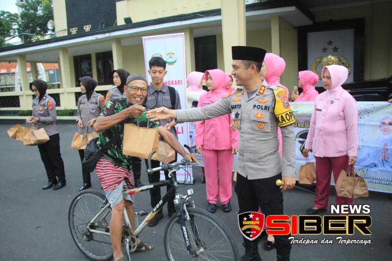 Petugas kepolisian membagikan takjil kepada masyarakat yang melintas di depan Mako Polres. Takjil yang dibagikan berupa makanan dan minuman ringan, seperti kurma, roti, dan air mineral. Masyarakat yang menerima takjil terlihat sangat gembira dan berterima kasih kepada petugas kepolisian.Takjil yang di bagikan kepada masyarakatnya sebanyak 100 bungkus takjil.