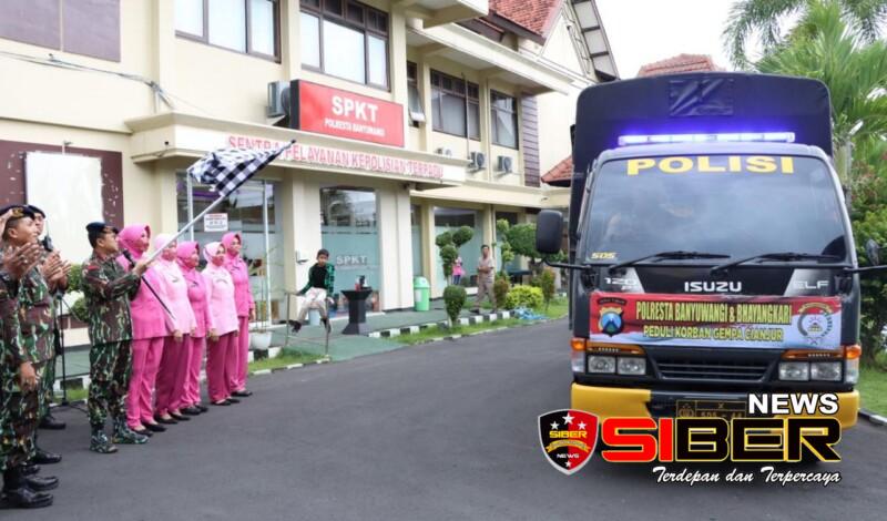 Pemberian bantuan korban gempa Cianjur tersebut dilepas secara simbolis oleh Kapolresta Banyuwangi Kombes Pol Deddy Foury Millewa.