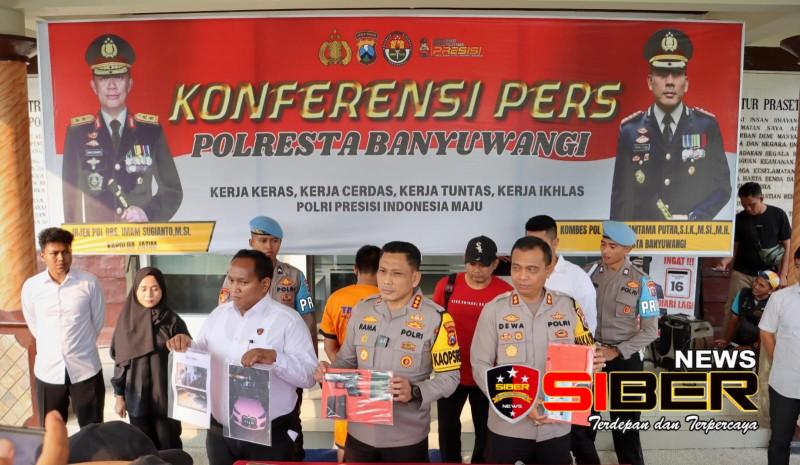 BANYUWANGI, SIBERNEWS.CO.ID – Polresta Banyuwangi menggelar Press Conference penetapan tersengka insial MMA pengemudi Sedan BMW pink bernopol P 44 PII, sebagai tersangka kasus ancaman kekerasan terhadap seorang juru parkir (jukir). Senin (11/11/2024).