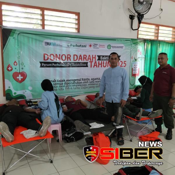 BONDOWOSO, SIBERNEWS.CO.ID – (22/08/2025) | Perhutani Kesatuan Pemangkuan Hutan (KPH) Bondowoso menggelar kegiatan sosial donor darah bersama Ikatan Istri Karyawan Perhutani (IIK-P) dan Palang Merah Indonesia (PMI) Kabupaten Bondowoso, aksi sosial donor darah tersebut diikuti 80 pendonor baik Karyawan kantor KPH maupun petugas lapangan serta Ibu-ibu IIK-P dan ikut serta masyarakat sekitar Kantor Perhutani KPH Bondowoso dan stakeholder, yang dilaksanakan di Aula Silva Kantor Perhutani Bondowoso Jln. A. Yani No. 90 Bondowoso, pada Jumat (22/08).
