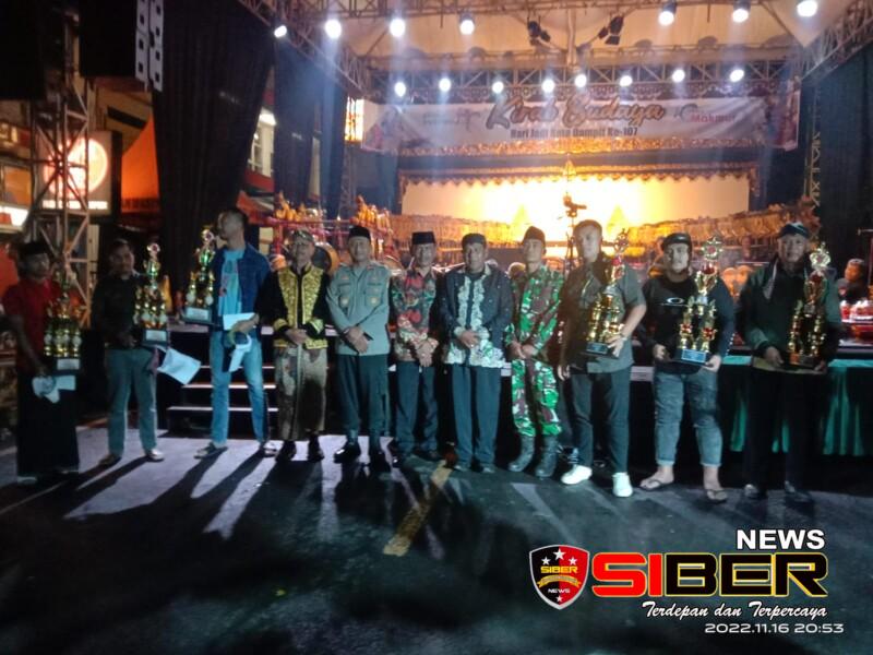 Dalam kesempatan tersebut Muspika Dampit,Camat,Danramil,Kapolsek serta Plt Lurah Dampit dan Ketua Panitia Pelaksana,secara bergantian memberikan Piala dan hadiah kepada para peserta yang menang dalam lomba kirab budaya dalam rangka hari jadi kota Dampit Ke – 107.