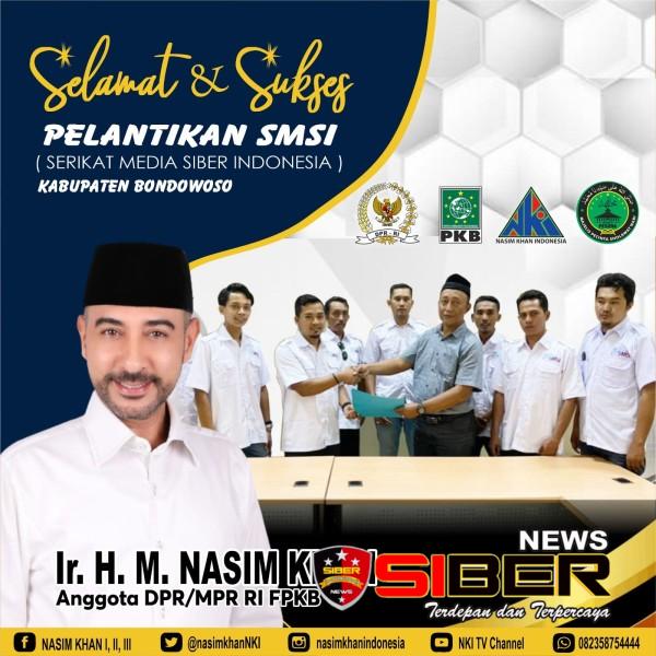 Ir. H.M Nasim Khan, Anggota DPR RI F-PKB Komisi VI mengucapkan selamat atas dilantiknya Arik Kurniawan sebagai Ketua SMSI Bondowoso.