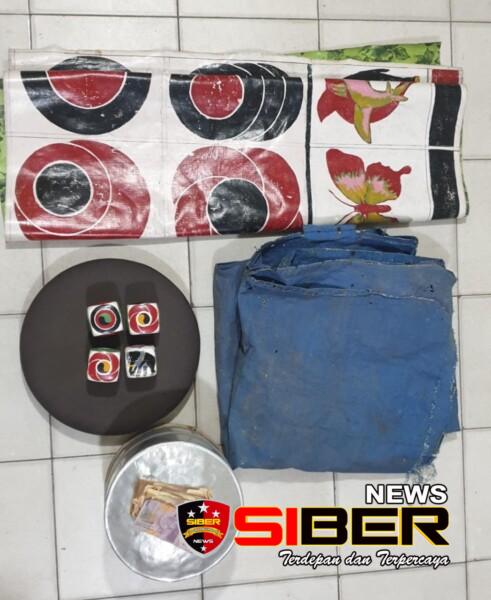 “Dari para terduga pelaku judi, diamankan barang bukti 1(satu) buah tempurung, 1(satu) alas tempurung, 4(empat) buah dadu, 1(satu) lembar karpet bergambar, 1(satu) lembar terpal warna biru, 2(dua) buah lampu, dan uang tunai Rp.60.000,-(enam puluh ribu rupiah).
