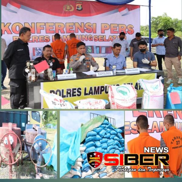 Lampung,SIBERNEWS.CO.ID_ 45 ton pupuk ilegal jenis TSP merk mahkota fitiliser dan pupuk KCL merk daun Sawit, di Desa Taman Agung Kecamatan Kalianda diamankan Polres Lampung Selatan. Jumat (14/10/2022).