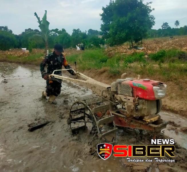 Kegiatan pendampingan membajak sawah dengan menggunakan traktor yang dilaksanakan Babinsa Koramil 0421-10/KTB Sertu Ngatno adalah cara lebih cepat membantu petani untuk menyuburkan tanah.