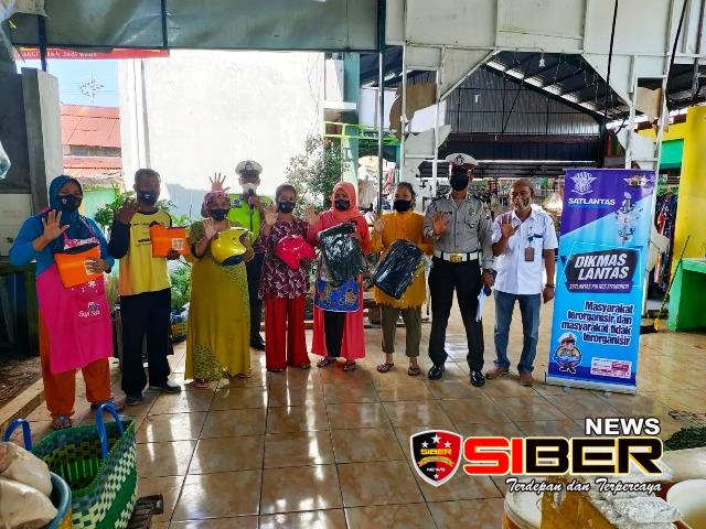 “ bersamaan dengan edukasi protocol kesehatan, Kita juga melakukan sosialisasi tentang tertib berlalu lintas kepada para pedagang “ terangnya