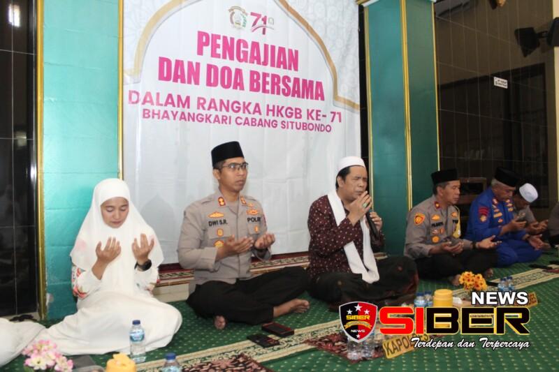 Situbondo, SIBERNEWS.CO.ID _ Menyambut Hari Kesatuan Gerak Bhayangkari (HKGB) ke- 71 tahun 2023, Pengurus Bhayangkari Cabang Situbondo mengadakan Doa bersama dan Santunan Anak Yatim di Masjid Al-Asykar Polres Situbondo, Kamis (7/9/2023) pekan lalu.