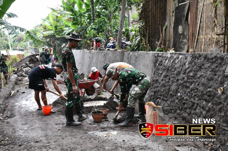 TNI Manunggal Membangun Desa (TMMD) Ke-123 Kodim 0822 Bondowoso personel yang tergabung dalam Satgas TMMD di Desa Trotosari, Kecamatan Tlogosari, Kabupaten Bondowoso akhirnya selesai membangun plengsengan, Sabtu (15/3/2025).