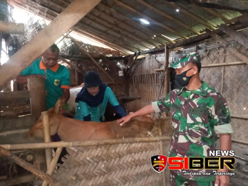 Bondowoso, SIBERNEWS.CO.ID _ Makin merebaknya Penyakit Mulut dan Kuku (PMK) terhadap sejumlah hewan ternak sapi di berbagai wilayah, Khususnya Kecamatan. Tlogosari Personil Koramil 13/Tlogosari bersama Tim peternakan Kecamatan Tlogosari melaksanakan pemberian Vaksin ke 2 Hewan Sapi. Kamis, (22/09/2022)