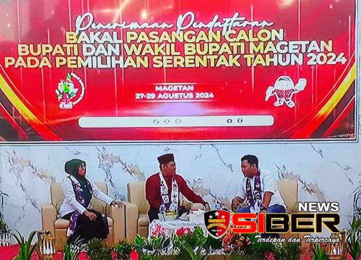 Pendaftaran ini dilakukan di Kantor Komisi Pemilihan Umum (KPU) Magetan dengan sambutan meriah dari masyarakat yang diiringi oleh pertunjukan Reog Ponorogo dan hadroh.ada juga .Massa yang hadir berasal dari beragam profesi, termasuk bakul etek, bakul jamu, bakul pentol, dan buruh tani, yang secara sukarela mengantarkan mereka untuk mendaftar sebagai bupati dan wakil bupati Magetan.