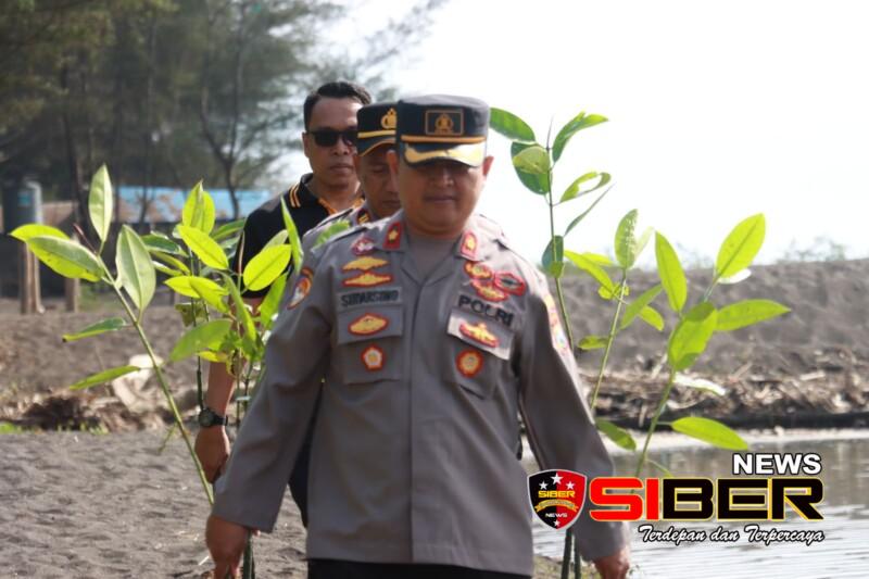 Banyuwangi, SIBERNEWS.CO.ID _ Jajaran Kepolisian Resor Kota (Polresta) Banyuwangi, Polda Jatim, menanam bibit mangrove.