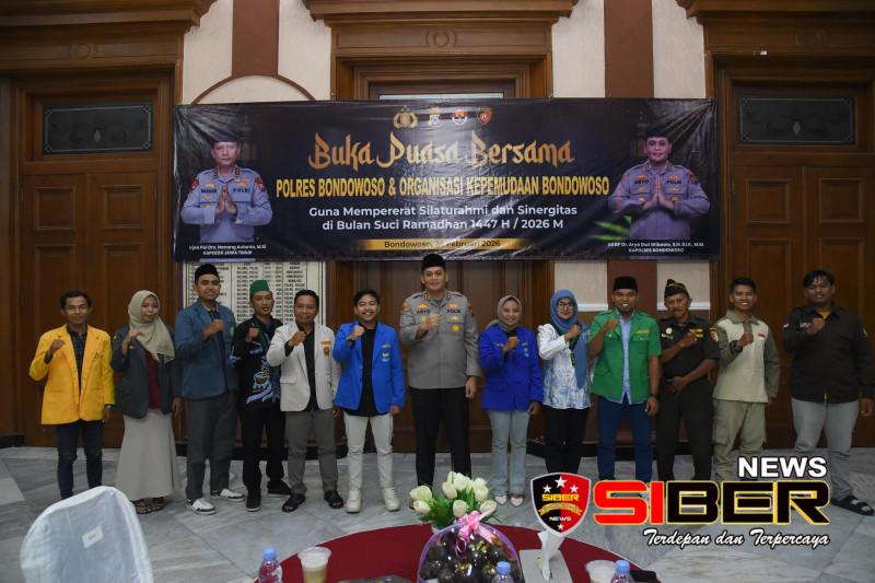 BONDOWOSO, SIBERNEWS.CO.ID – Momentum bulan suci Ramadhan 1447 H dimanfaatkan Kepolisian Resor (Polres) Bondowoso untuk memperkuat tali silaturahmi dengan elemen pemuda. Bertempat di Mapolres Bondowoso, Kapolres Bondowoso AKBP Dr. Aryo Dwi Wibowo, S.H., S.I.K., M.M., menggelar acara buka puasa bersama dengan jajaran Organisasi Kepemudaan (OKP) se-Kabupaten Bondowoso pada Selasa (25/02/2026).