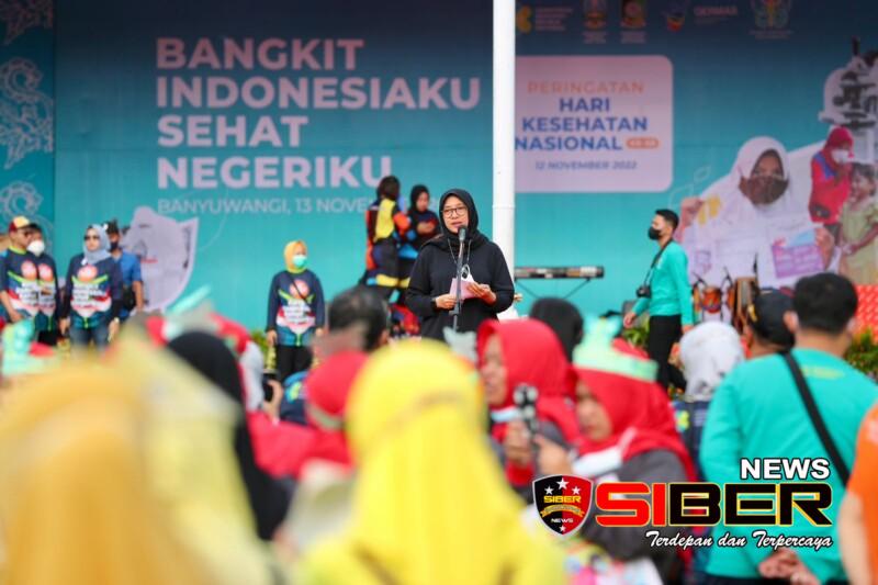 Banyuwangi,SIBERNEWS.CO.ID_Peringatan Hari Kesehatan Nasional (HKN) ke-58 di Kabupaten Banyuwangi berlangsung meriah, di Taman Blambangan Banyuwangi, Minggu (13/11/2022). Ribuan insan kesehatan mulai dokter, perawat, bidan, apoteker, ahli gizi, dan berbagai profesi bidang kesehatan lainnya, melakukan parade edukasi kesehatan pada masyarakat.