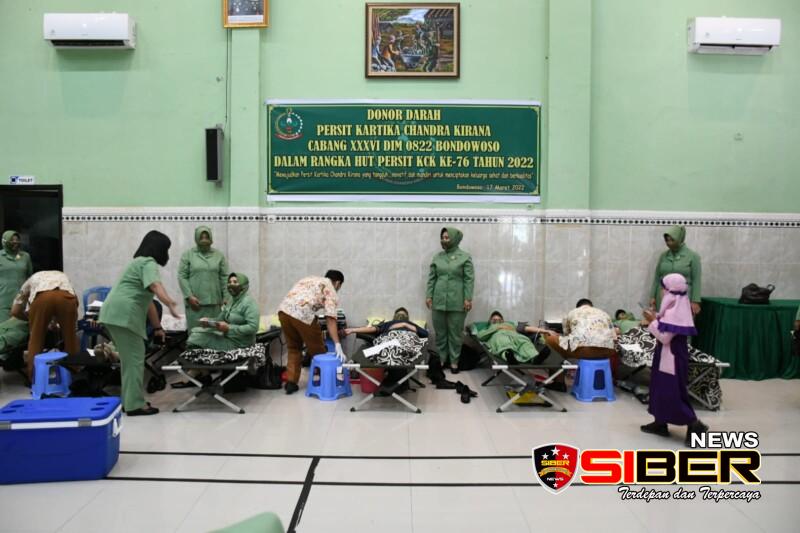 Bondowoso, SIBERNEWS.CO.ID _ Dalam memperingati HUT Persatuan Istri Tentara (Persit) Kartika Chandra Kirana Ke-76 Tahun 2022, Persit KCK Cab. XXXVI Dim 0822 Bondowoso. Kegiatan yang dilaksanakan di Markas Kodim 0822 Jl. Letnan Sutarman No. 02 Bondowoso, Selasa (15/3/2022).