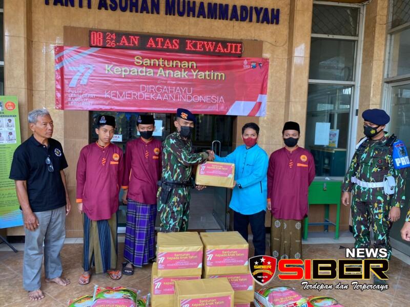 Staf Makosat Brimob dipimpin Dansat Brimob, memberikan santunan pertama ke Yayasan anak yatim Panti Asuhan Muhammadiyah Karangpilang, Jalan Mastrip No. 64-66 Karangpilang, Surabaya, diterima Hadi Utomo, selaku (Ketua Yayasan Panti Asuhan Muhammadiyah Karangpilang, Surabaya).