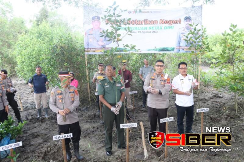 Penanaman bibit pohon di Batu Kapal, Desa Merak Belantung, Kecamatan Kalianda, Lampung Selatan, berjumlah 1.000 pohon mangrove, lalu jajaran polsek-polsek yang ada di Polres Lampung Selatan ikut menanam sebanyak 1.100 pohon berbagai jenis.
