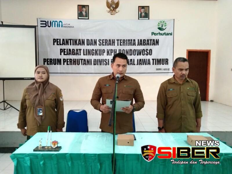Ronny Merdyanto Administaratur Perum Perhutani KPH Bondowoso menggelar acara pelantikan dan serah terima jabatan kepada 7 orang pejabat baru diantaranya Anton Sujarwo S.Hut sebagai Wakil ADM/KSKPH Bondowoso selatan menggantikan Enny Handhayani yang dimutasikan sebagai Kasi utama bidang pembibitan dan tanaman kantor Divre Jatim, Horsis sebagai Asper/KBKPH.Sukosari, Mohamad Karto sebagai Asper/KBKPH Sumber Wringin, Didik Sunarianto sebagai Kasubsi Pembinaan SDH, Rus Yahya sebagai KRPH.Sumber Wringin, Susilo Adi Saputro sebagai KRPH Prajekan dan Suprapto sebagai KRPH Wringinanom