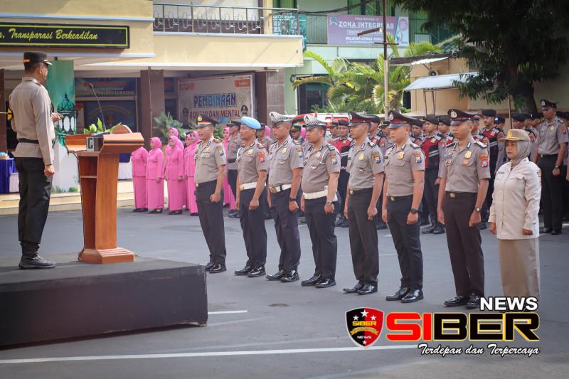 Dalam amanatnya, Kapolres Lumajang menyampaikan ucapan selamat kepada para personel Polres Lumajang yang baru saja naik pangkat.