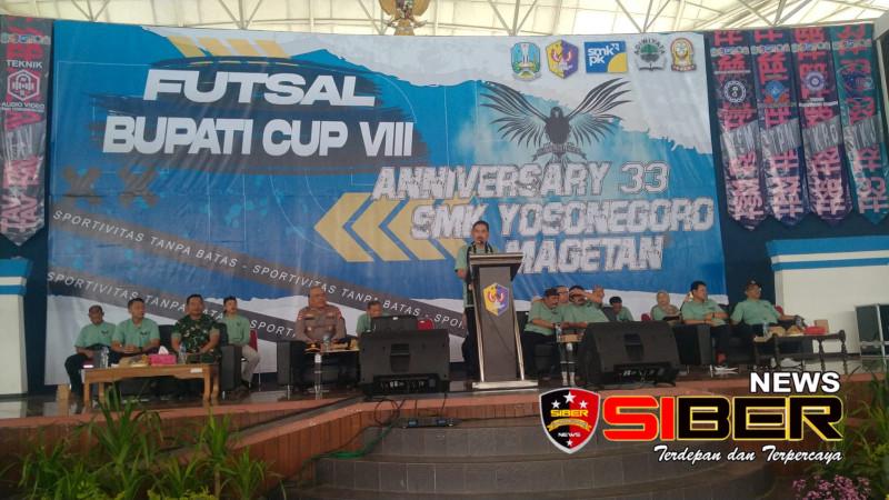 PJ Sekda Magetan membuka Turnamen futsal Bupati cup VIII di HUT SMK YOSONEGORO ke 33