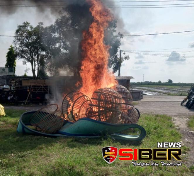 Barang bukti sangkar ayam, 16 ayam jago dan 24 motor dibawa ke Mapolsek Krian Polresta Sidoarjo.