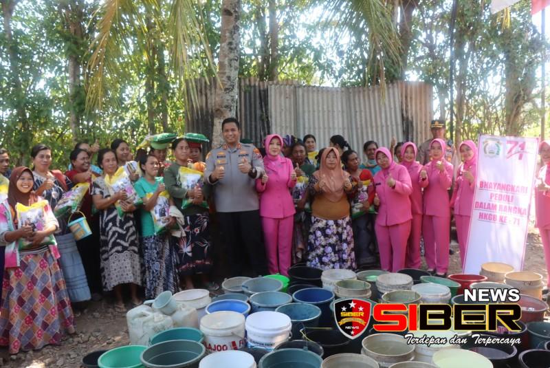 Tak hanya itu saja, selain berikan bantuan air bersih, Ibu-ibu Bhayangkari juga memberikan bantuan sembako berupa Beras kepada masyarakat di Desa Purnama khususnya.